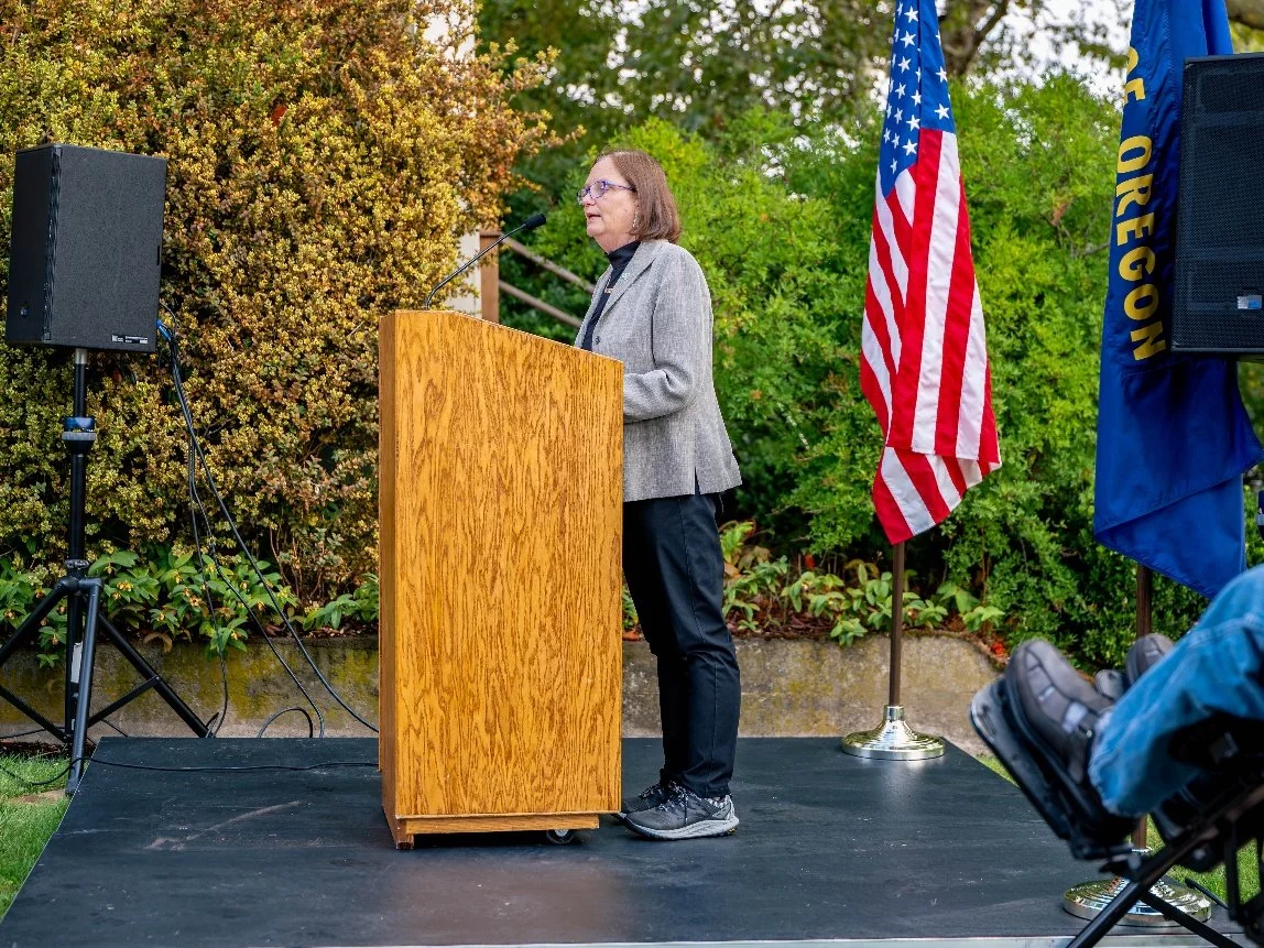 It took 75 years for State, County, and Local governments to acknowledge their mistreatment of the black families living “Across the Bridge” in 1949. The ceremony was held on the front lawn of the Historical Mims Houses on High Street in Eugene Oregon. More information about “Across the Bridge” is available on a KVAL TV YouTube Documentary by Tiffany Lewis.